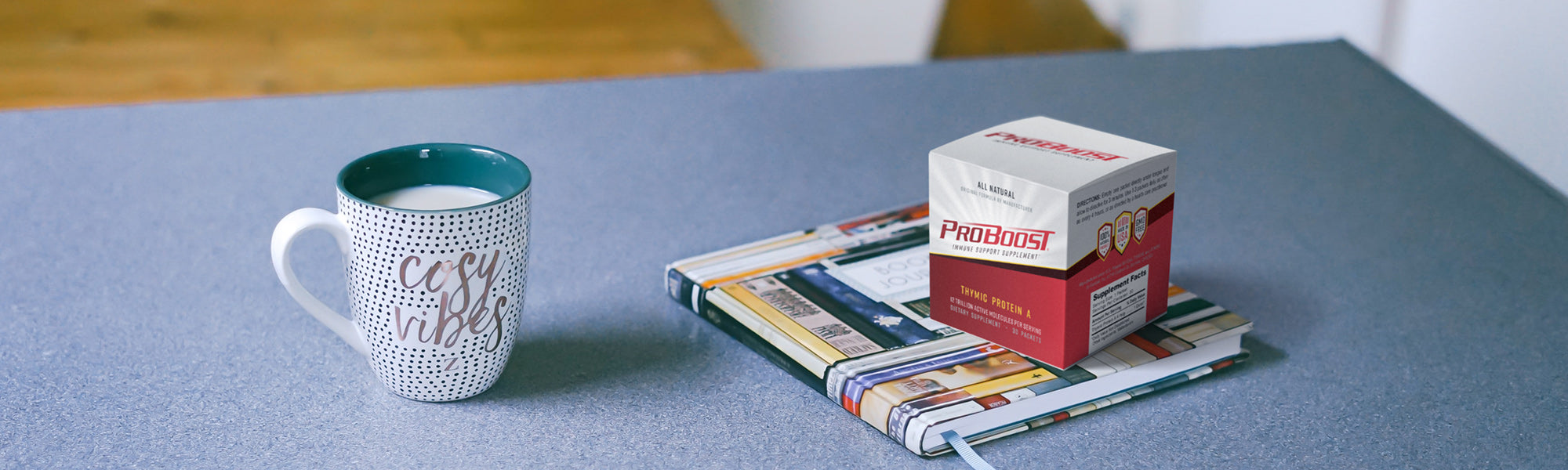 The active ingredient in ProBoost is Thymic Protein A, a critical protein naturally produced by the thymus gland and responsible to program the body’s T-cells to stimulate an immune system response. Each of the 12 trillion molecules of Thymic Protein A in a single packet of ProBoost contain an important transmitter which seeks out the CD-4 helper white blood cell and attaches to it to activate the cell. The CD-4 helper cells, after they are formed, are NOT fully functional unless they come into direct contact with Thymic Protein A. The CD-4 helper cell controls critical effector cells, including CD-8 killer cells and CD-8 suppressor cells, by secreting chemical messengers called cytokines such as interleukin-2 and interferon. When the body has a sufficient amount of properly working CD-4 cells, adequate amounts of cytokines are created to allow the entire system to function properly.